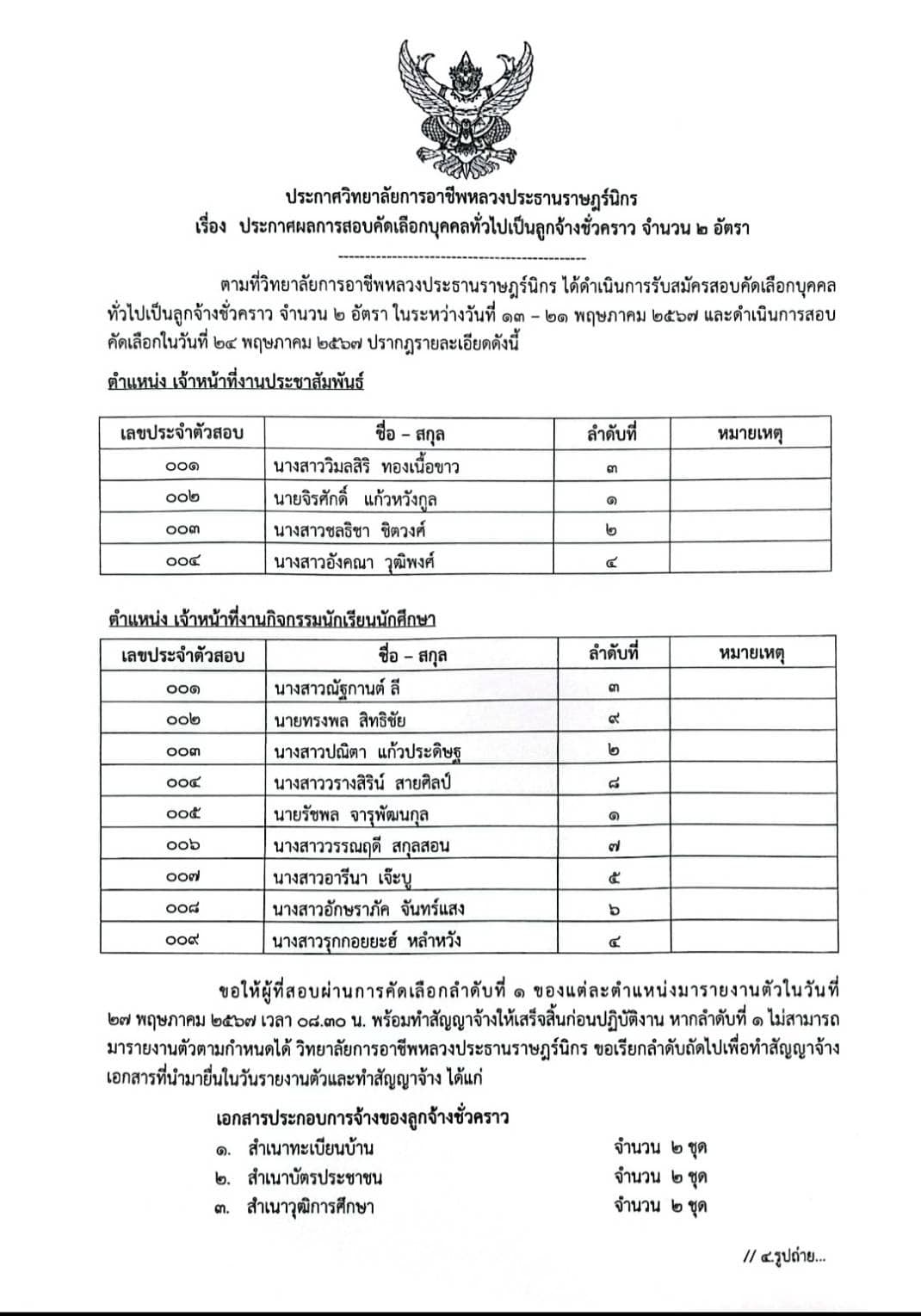 ประกาศผลสอบ ตำแหน่งเจ้าหน้าที่งานประชาสัมพันธ์ และ เจ้าหน้าที่งานกิจกรรม